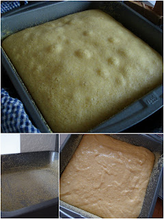 Pour into prepared pan and bake 25-30 min until surface is golden brown, or springs back to touch.