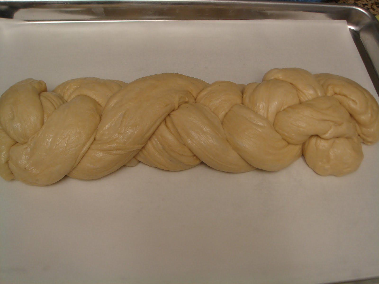 Gently shape dough - divide into three sections and "braid", fasten ends securely.